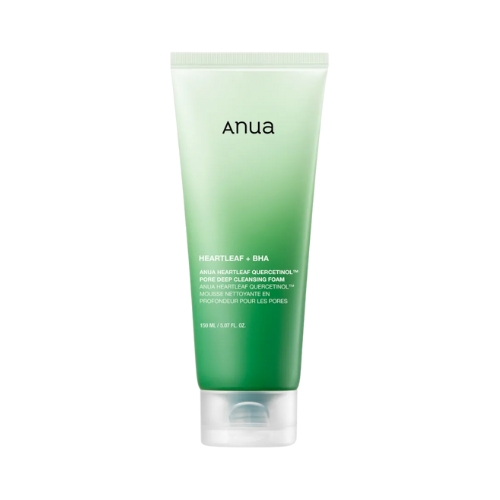 Deretter følger Anua Heartleaf Quercetinol Pore Deep Cleansing Foam, både morgen og kveld, for å rense bort urenheter på en skånsom måte.